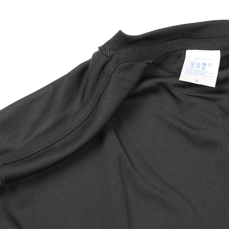 よくあるスポーツ用のドライTシャツの厚みが3.5オンスから4.5オンスなのに対して当店のTシャツは4.7オンスとある程度の厚みがあるんです。(ちなみに綿のTシャツが4〜6oz程度、トレーナーやパーカーが10oz程度のものが多いです。)